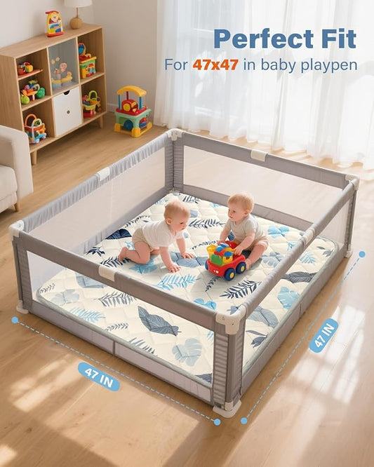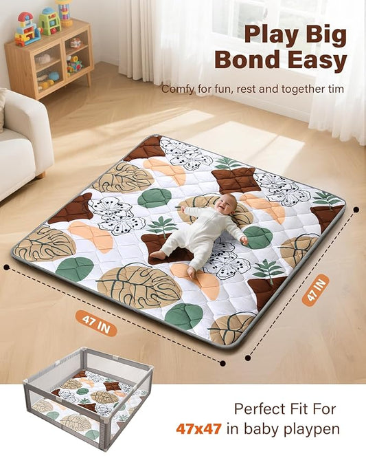 Baby Play Mat, Non-Slip Baby Mat for Floor, Soft Thicker Playpen Mat, Portable Playmat, Crawling Mat for Babies, Toddlers & Infants to Play and Learn(47"x47")