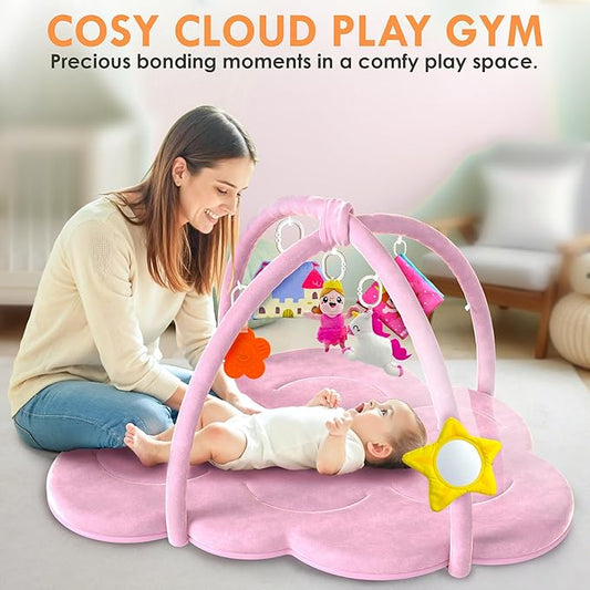 Lovvie & Joy Baby Play Activity Gym Tummy Time Mat for Infant,Baby Gyms & Playmats for Babies 0 to 3 6 9 12 Months with 5 Toys for Early Sensory Exploration and Motor Skill Development