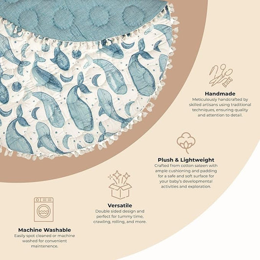 Crane Baby Activity Mat, Baby Play Mat Whale Print, Ocean Nursery Decor for Boys & Girls, Infant Tummy Time Floor, Ocean Nursery Decor, 40" x 40"