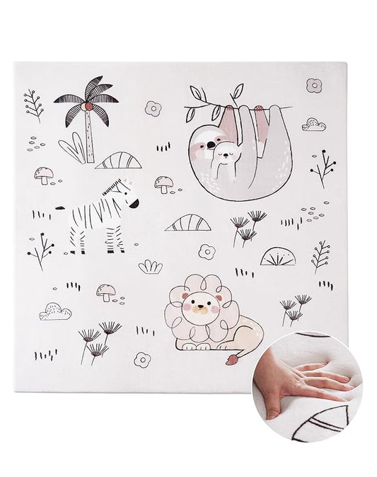 ACOMOPACK Baby Play Mat for Floor 1.3" Thick Memory Foam 50x50 Soft Velvet Playpen Mat for Kids,Infants,Toddlers,Tummy Time Crawling Mats with Non-Slip Bottom,Yoga,Tatami,Nursery Rug(Beige)