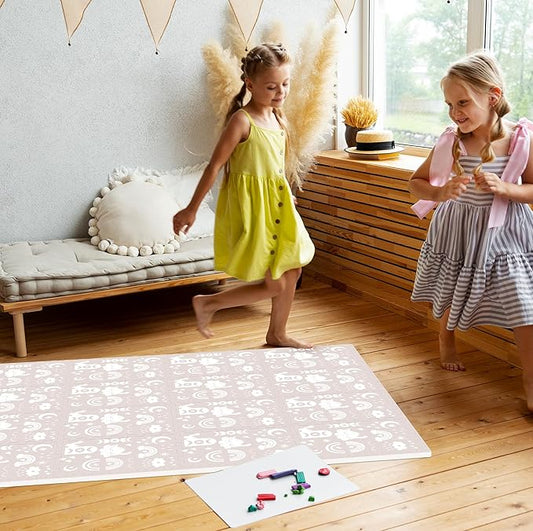 ACOMOPACK Baby Play Mat for Floor 1.3" Thick Memory Foam Play Mats 71"×79" Tummy Time Crawling with Non-Slip Bottom for Living Room,Nursery,Soft Velvet Playpen for Kids,Infants(Pink)