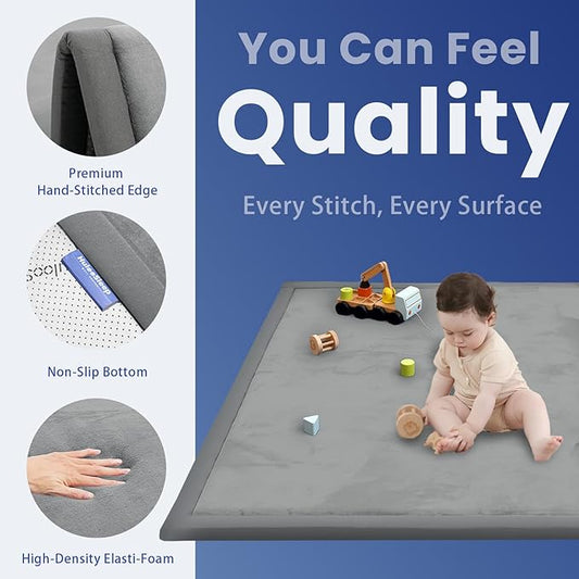 ACOMOPACK Baby Play Mat for Floor 1.3" Thick Memory Foam Play Mat 71"×79" Tummy Time Crawling with Non-Slip Bottom for Living Room,Nursery,Soft Velvet Playpen Mats for Kids,Infants(Dark Grey)