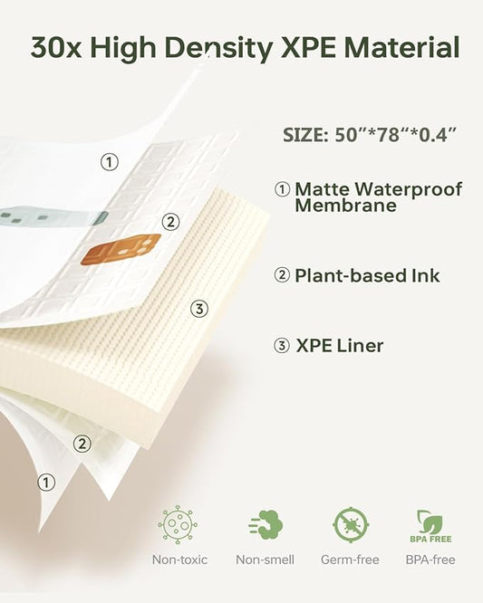 Premium Foam Baby Play Mat 71x59 – Removable & Machine Washable Cover, Extra Thick Padding Playpen Mat, Non-Slip Crawling Mat, Easy to Clean for Infants, Toddlers & Babies