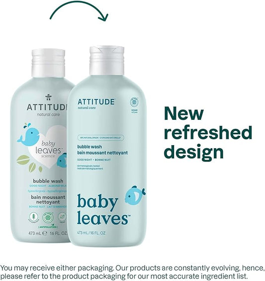 ATTITUDE Bubble Body Wash for Baby, EWG Verified, Dermatologically Tested, Plant and Mineral-Based, Vegan, Good Night, 16 Fl Oz (Pack of 6)