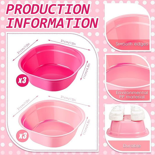 Patelai 6 Sets Kids Foot Spa Kit for Girl 12 x 12 x 4.3 Inch Foot Tub 14 x 30 Inch Hand Towels Washbasin Towels for Spa Party Sleepover Party Supplies (Pink, Rose Red)