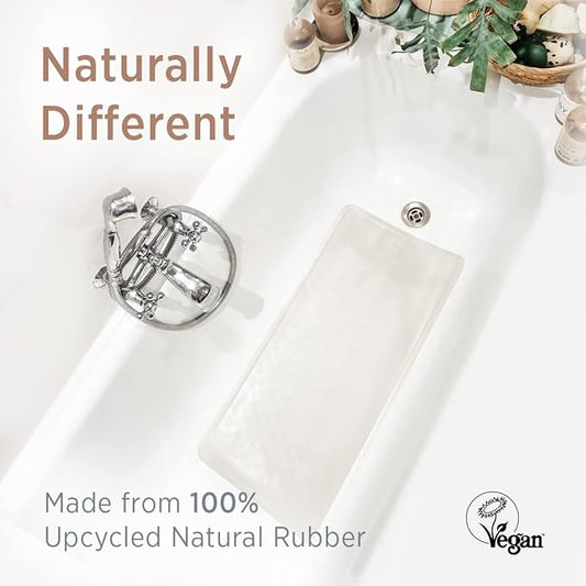 HEVEA Natural Rubber Wave Square Bath Mat - Upcycled, Danish Design - Non Slip Bathtub Mat, 299 Suction Cups - Safe and Friendly Shower Mat for All Ages (Granite)