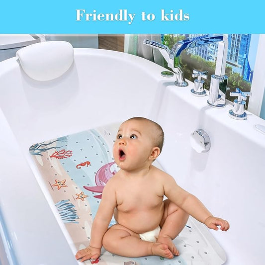 Linoows Baby Bath Tub Mat, Extra Large Non Slip Kids Cartoon Bathtub Shower Mats with Suction Cups & Drain Holes, Machine Washable for Bathroom, 40 x 16 Inch, Undersea-Diver