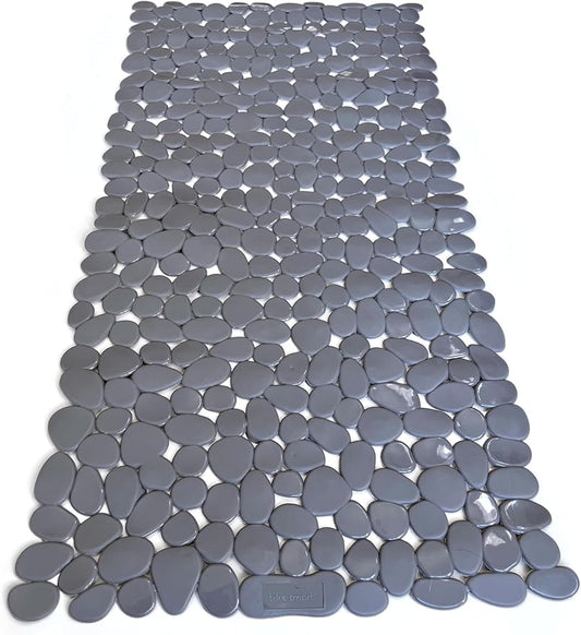 “Pebbles” Non-Slip Bathtub/Shower Mat 35"x16" Rectangular, Non-Toxic, Safe, Clean, Machine-Washable, Superior Grip & Drainage, Vinyl, for Smooth Floors ONLY, Transparent Gray