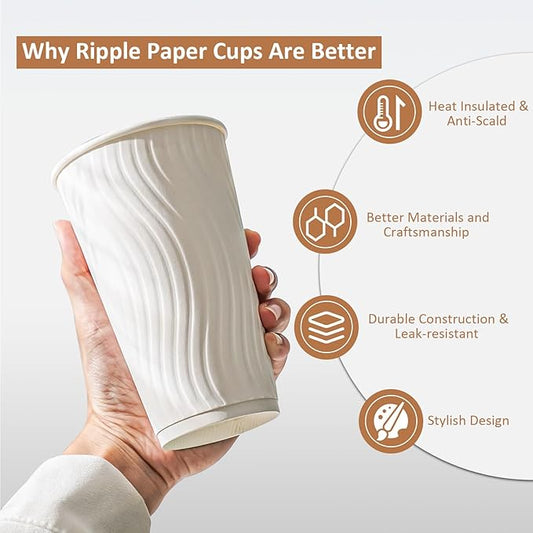 12 oz Coffee Cups 120 Pack, Disposable Coffee Cups 12 oz Paper Cups - Insulated Paper Coffee Cups Fancy Hot Cup for Hot/Cold Drinks, Wedding/Baby Shower/Office, White