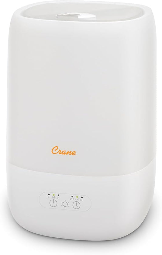 Crane Top Fill Mini Humidifier for Bedroom and Nursery 3-in-1 Essential Oil Diffuser Sleep Light 0.5 Gallon Baby Humidifier
