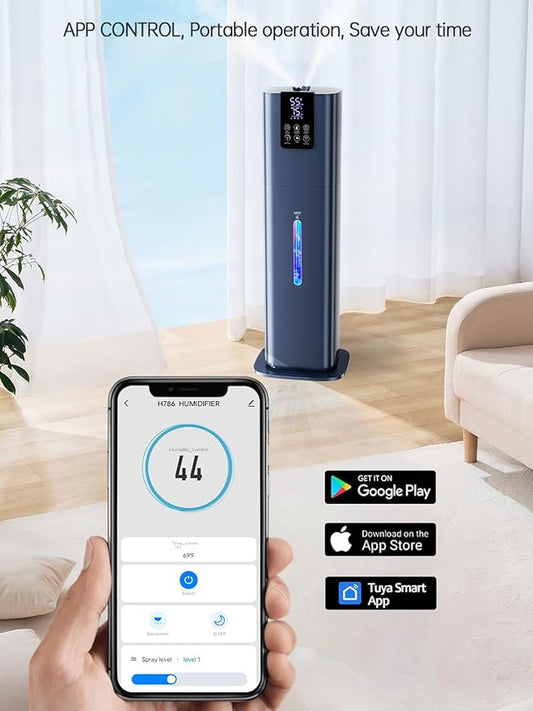 8L Smart Humidifiers for Bedroom Large Room, 2.1Gal Cool Mist Top Fill Diffuser Ambient Light, App & Remote Control, 3 Mist Modes, Quiet Humidifier for Home Office Plant (Blue)
