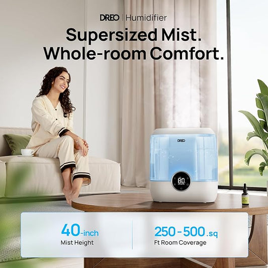 Dreo 6L Top Fill Humidifiers for Bedroom, 60H Runtime 28 dB Quiet Supersized Cool Mist Air Humidifiers for Large Room, Baby Nursery, Plant, Indoor, Night Light, Easy to Clean, Precise Humidity Control