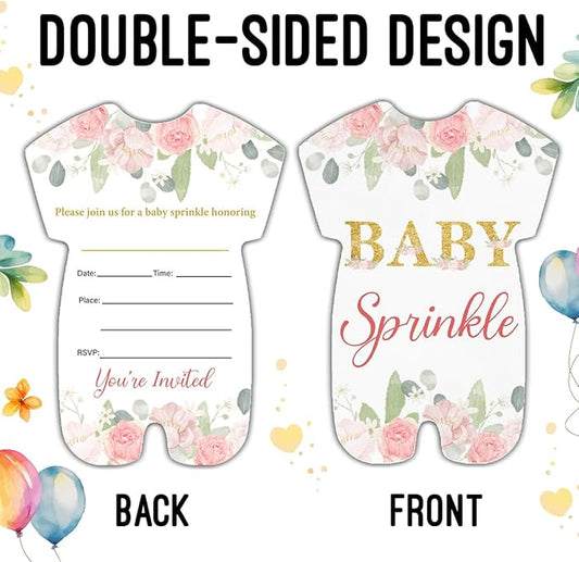 LyoGao Baby Sprinkle Baby Shower Invitations - Blush Floral Theme Baby Shower Party Fill in Invites Cards With Envelopes (20 Pack)