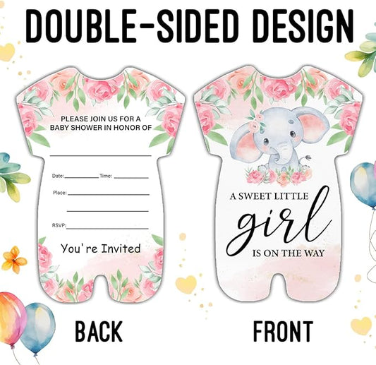 LyoGao Elephant Baby Shower Invitations for Girl - Floral Elephant Theme Baby Shower Party Fill in Invites Cards With Envelopes (20 Pack)