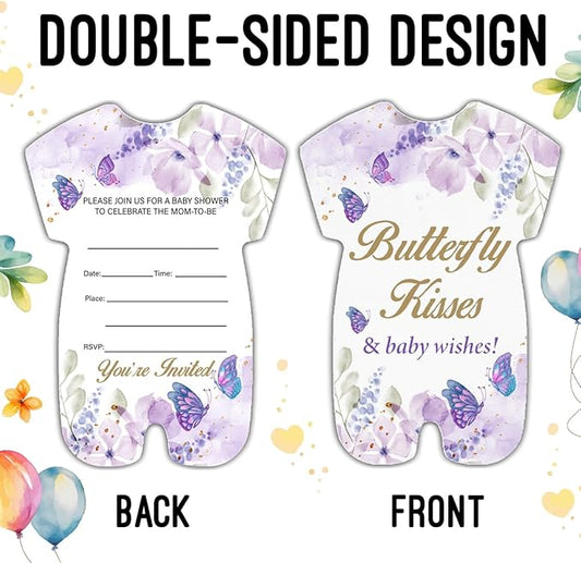 LyoGao Butterfly Baby Shower Invitations for Girl - Floral Butterflies Theme Butterfly Kisses and Baby Wishes Baby Shower Party Fill in Invites Cards With Envelopes (20 Pack)
