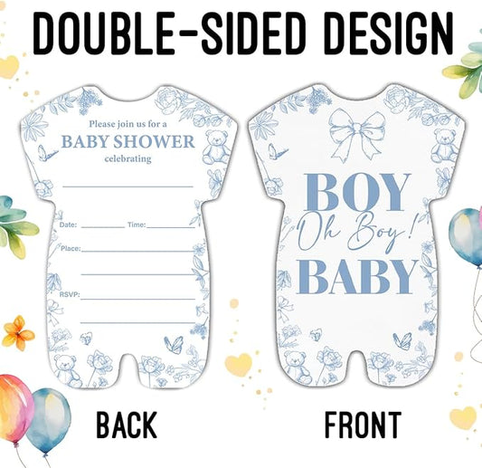 LyoGao Oh Boy Baby Shower Invitations - Dusty Blue Toile Bear Baby Shower Party Fill in Invites Cards With Envelopes (20 Pack)