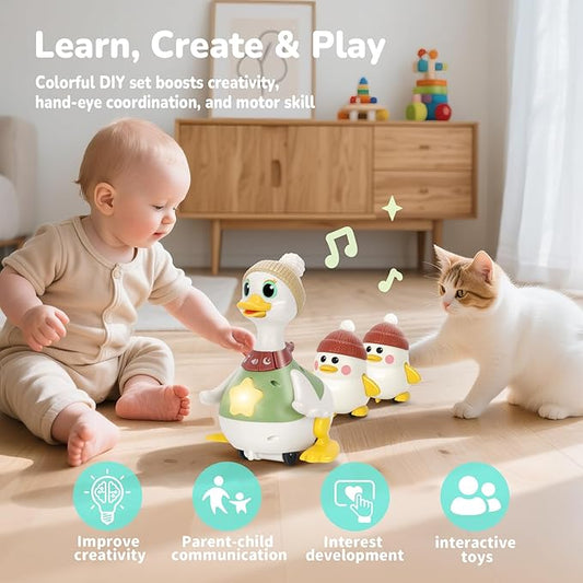 Hestiasko Dancing Duck Toy for Babies 6-36 Months, Musical Crawling & Tummy Time Toy Set with Magnetic, Learning Crawl Interactive Baby Toys for Toddlers 1-3 Birthday Easter Gifts for Boys Girls