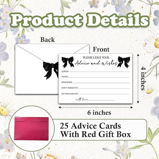 Advice And Wishes Cards (25pcs), Black Bow Advice Cards For Mr And Mrs, Bride And Groom, New Parents, Bridal Shower, Baby Shower, Engagement, Wedding, Bachelorette Party Games Decor -A12