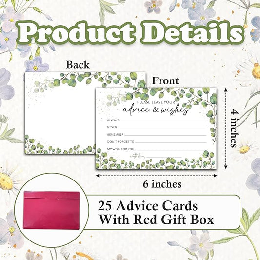 Advice And Wishes Cards (25pcs), Greenery Advice Cards For Mr And Mrs, Bride And Groom, New Parents, Bridal Shower, Baby Shower, Engagement, Wedding, Bachelorette Party Games Decor -A11