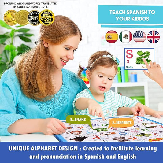 Gufino Alphabet Wall Chart - Bilingual Toys with Interactive Touch Buttons for Independent & Guided Learning - Ideal for Preschool Learning Activities & Spanish Classroom Supplies.