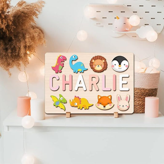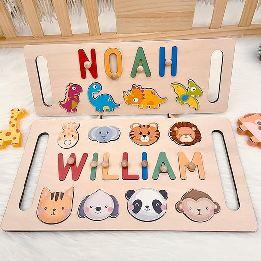 Name Puzzle for Kids Personalized, First Birthday for Baby Boy Girl, Wooden Name Puzzles for Toddlers 1-3, Educational Toys for 1 Year Old (Animal)