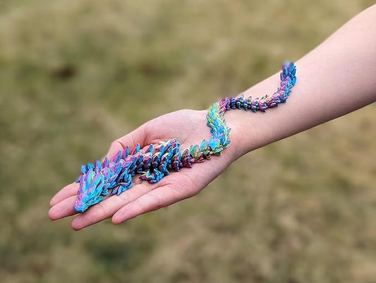 12" Articulated Gem Stone Dragon - New 2024 Ver - Multi Color 3D Printed Plastic Dragon Figure - Rainbow Pearlescent Colors - Interlocked Body Segments and Legs (Medium 12", Blue Raspberry)
