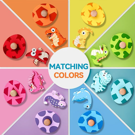 Wooden Puzzles for Toddlers 1-3, Montessori Toys for 1 2 Year Old Boy Birthday Gifts, Dinosaur Matching Eggs Peg Puzzles for Toddlers Age 2-4, Preschool Learning Activities for Girls