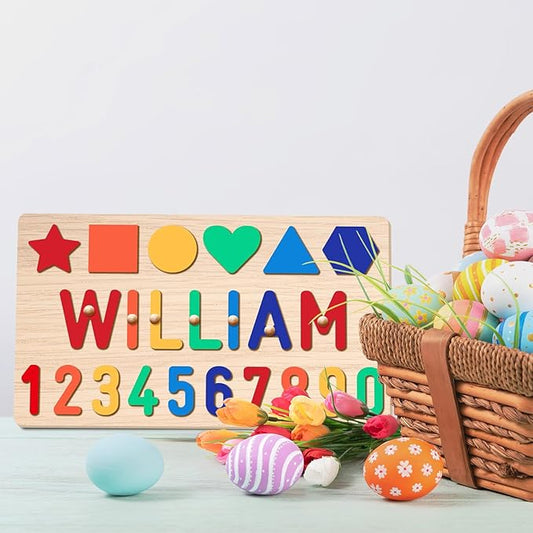 Name Puzzle for Kids Personalized, Custom Baby First Birthday Easter Gift, Montessori Learning Toddler Toy for Boy Girl, Alphabet Puzzle