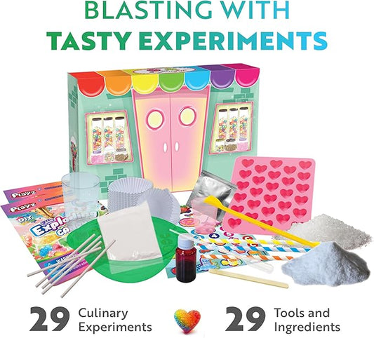 Playz Edible Exploding Candy Making Science Kit for Kids Ages 8-12 Years Old - Food Science Chemistry Kid Science Kit with 29 Experiments, Educational Science Kits for Boy & Girls