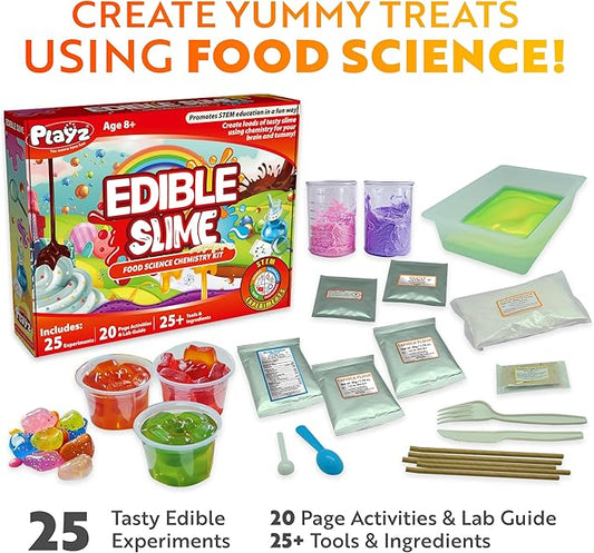 Playz Edible Slime Candy Making Science Kit for Kids Ages 8-12 Years Old - Food Science Chemistry Kid Science Kit with 25 Experiments to Make Slime Chocolates, Educational Science Kits for Boy & Girls