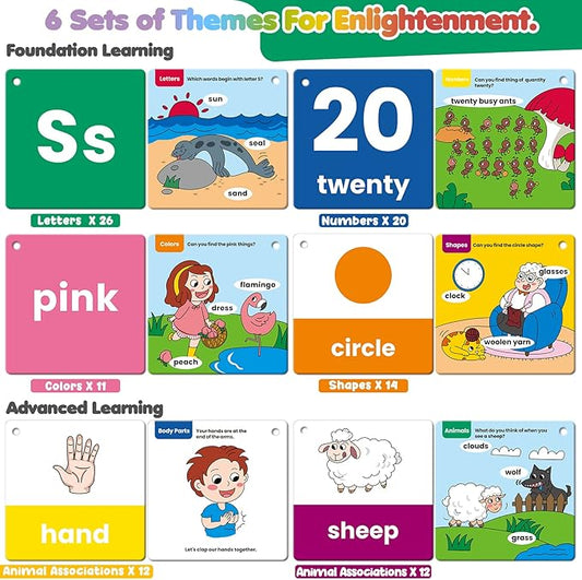beiens Flash Cards for Toddlers 1-4 Years - 105 Cards - 210 Sides with Rings - Learn Colors, Number, Shapes, Animals, Body Parts, ABC Letters & Sight Words - Fun Learning and Educational Flashcards