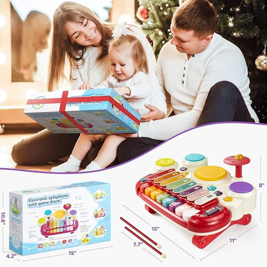Marstone Baby Toys for 1 Year Old Girl Birthday Gifts: 5 in 1 Boy Musical Set for Toddler 1-2, Educational Learning Toys 12-18 Months with Piano, Xylophone, Whack a Mole, Drum Set, Sound and Music