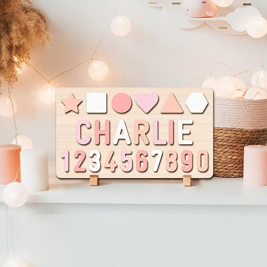 Name Puzzle for Kids Personalized, 1 Year Old Girl Boy Birthday Gifts Wooden Name Puzzle for Toddlers 1-3, Alphabet Puzzle Shape & Number Puzzle Personalized Baby Toys Educational Toys