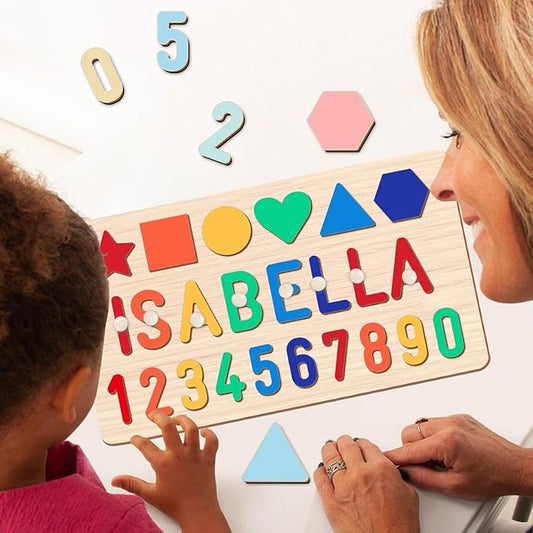 Name Puzzle for Kids Personalized, Custom Baby Gifts with Engraved Text on The Back, Personalized Name Puzzles for Toddlers 1-3 with Pegs, 1st Birthday Gifts for Boys & Girls Kid Toys