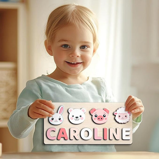 Personalized Name Puzzle for Kids, Custom Animal Puzzle for Toddlers 1-3, Personalized Baby Gifts for 1st Birthday, Customized Gifts for Baby Girl Boy, Montessori Toys Educational Play