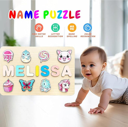 Name Puzzles for Toddlers 1-3, Personalized Wooden Name Puzzle, Custom Baby Birthday, Baby Montessori Learning Toys for 1-3 Year Old