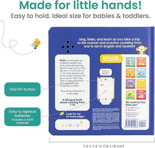 Binibi Spanish Musical Book - Counting at The Market | Bilingual Children's Book for Babies & Toddlers 1-3 | Libro en Espanol para Bebes
