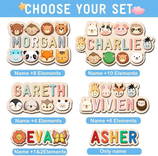 Personalized Baby Name Puzzle | Custom Wooden Baby Toy for Toddlers 1-3 | Montessori Learning Toys for Boys & Girls | Perfect Kids Gift for First Birthdays & Christmas (Plus)