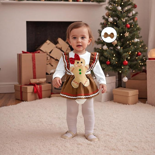 YINGISFITM My First Christmas Baby Girl Outfit Gingerbread Man Romper Dress and Headband Newborn Christmas Clothes for Girls