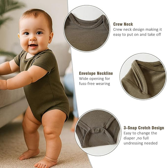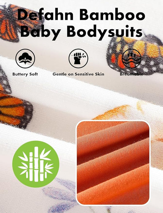 DEFAHN 2PCS Visocse from Bamboo Baby Rompers Unisex Onsies Solid Short Sleeve Baby Bodysuit 0-24 Months