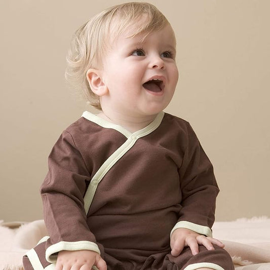 Babysoy Newborn Baby Unisex Kimono Side Snap Long Sleeve Onepiece Romper Coverall