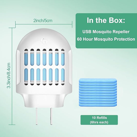 Mosquito Repeller, Electronic Mosquito Repellent Plug in Indoor Use, Includes 2-Pack 280 Hr Repellent Refills, No Candles or Flames, DEET-Free, for Home, Bedroom, Office, Kitchen (White)