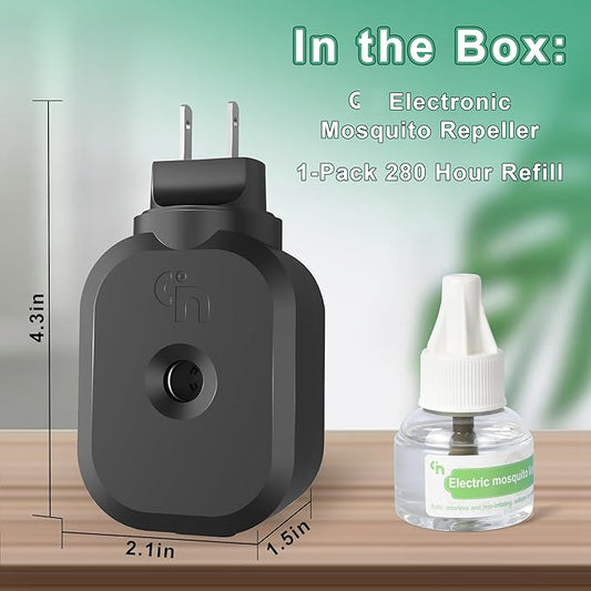 Mosquito Repellent Indoor Use with 1-Pack 280 Hr Repellent Refills, Electronic Mosquito Repeller Plug in, Highly Effective, DEET-Free, for Home, Bedroom, Office, Kitchen (Black)