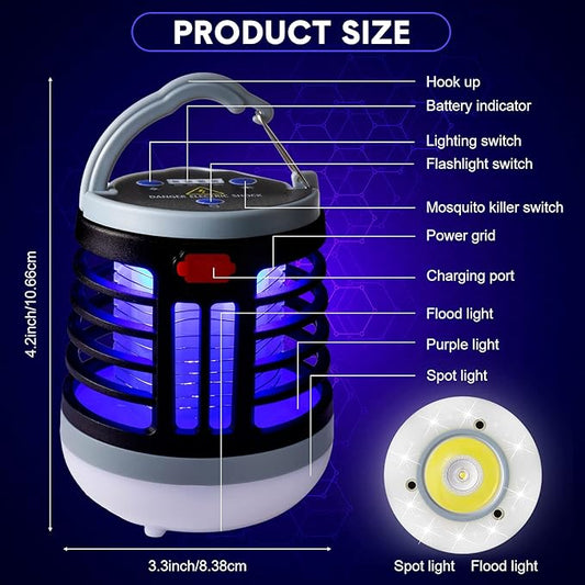 2 Pack 3 in 1 Bug Zapper USB Rechargeable Mosquito Killer Portable Waterproof Mosquito Repellent Outdoor Indoor LED Lantern Bug Zapper Camp Light SOS Emergency Light for Home, Backyard, Patio (Black)