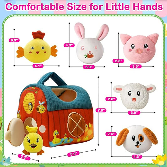 Baby Toys 6-12 Months Plush Barn with Stuffed Farm Animals Crinkle, Rattle & Mirror Montessori Toys Developmental Sensory Toys for 6 Month Old Boys Girls Babies & Toddlers
