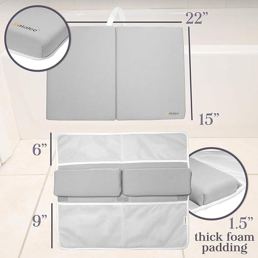 Premium Bath Kneeler, Baby Bath Kneeler and Elbow Rest Pad Set, Kneeling Pad for Bathing Baby, Knee Pads for Bathing Babies, Large Knee Pads (22 Inch × 13 Inch) with 4 Mesh Pockets (Large, Gray)