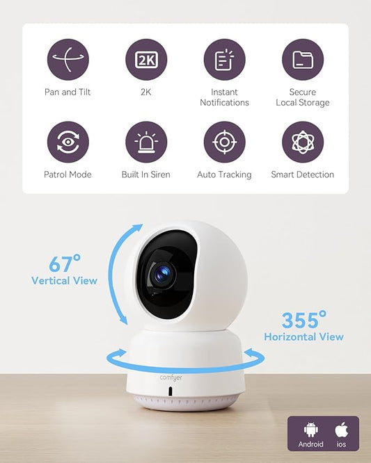 Baby/Pet Monitor for Indoor Security, Monitoring with Smart Phone app, 2K QHD Resolution, Auto Tracking/Motion Dection, 2-Way Audio Talk, Night Vision, Pan-Tilt Camera