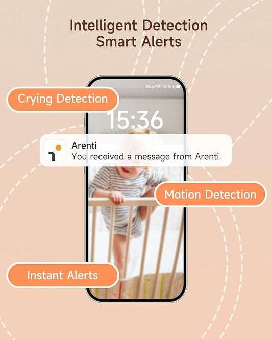 ARENTI Baby Camera Monitor, 2K/3MP WiFi 6, Smartphone App, Super Night Vision, Crying Detection, Auto Tracking, Temp&Humidity Sensor, Cloud&SD Card Storage (D3)