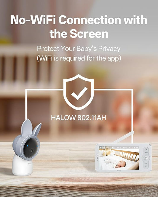 Video Baby Monitor with Camera and Audio,5'' IPS Screen,720P HD,App,Remote Pan/Tilt/Zoom Camera,Lullabies,Feeding Remind,HD Night Vision, VOX,2-Way Talk,Triple Security,1500ft Long Range