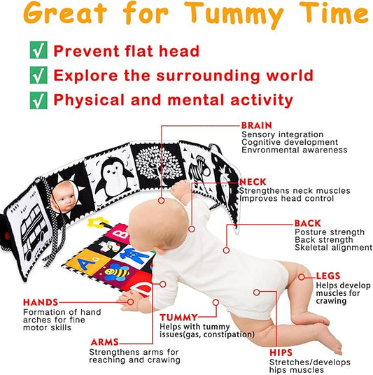 4 PCS Black and White High Contrast Baby Toys 0-3-6 Months Newborn Essential Montessori Toy for Babies Crinkle Sensory Book Brain Development Tummy Time Mirror Infant Carseat Rattle Easter Shower Gift